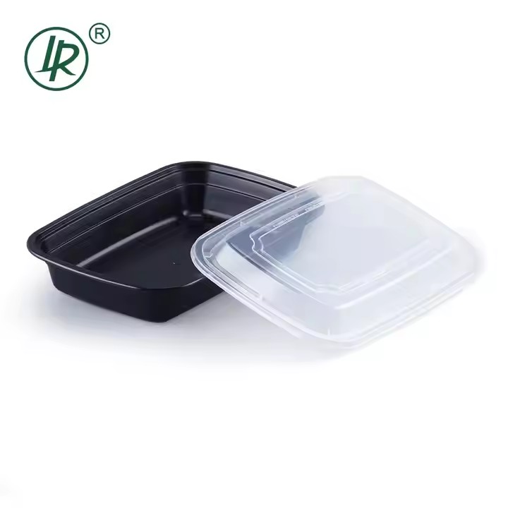 Hot Selling 770ml Clear Lid Black Base Rectangular Disposable PP Food Box, Microwaveable Plastic Take Away Food Containers