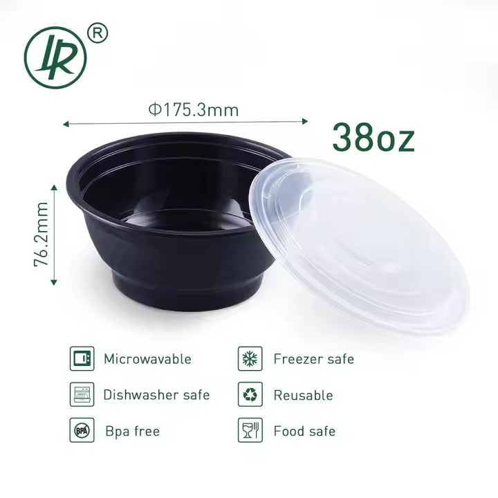 Manufacture 32OZ Microwave Soup Delivery Plastic Round Food Container Leakproof PP Deli Cups With PE Lid